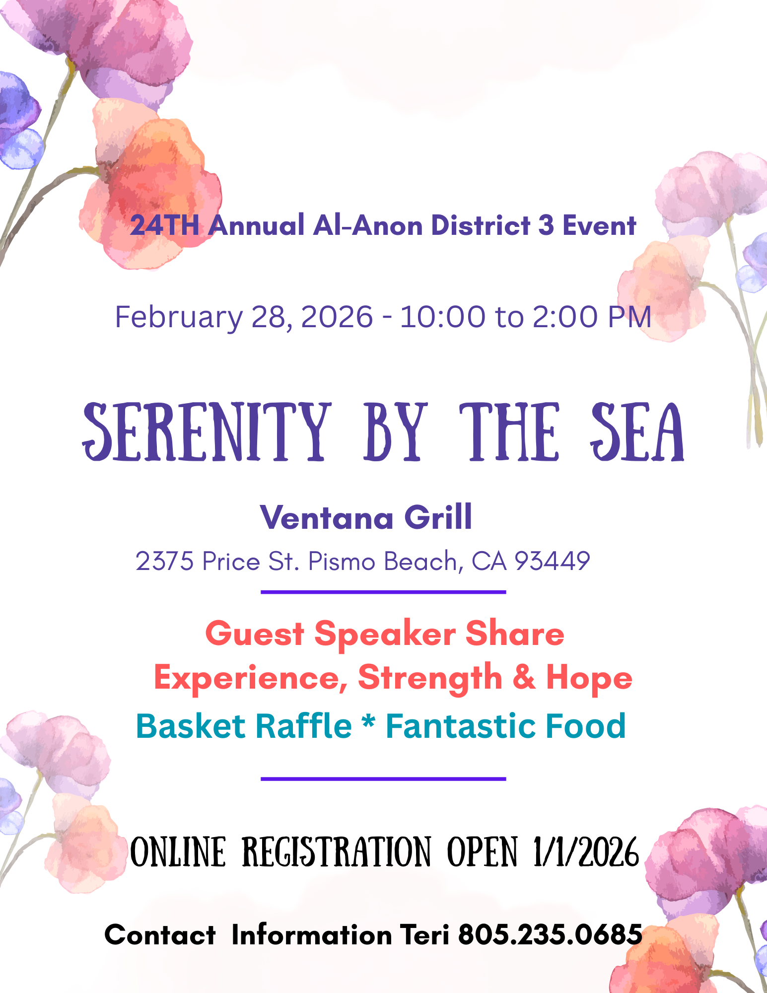 We look forward to seeing you at the annual Al-Anon Family Group Serenity by the Sea 2026 event!
